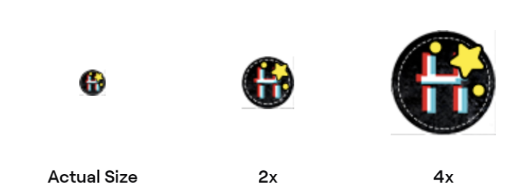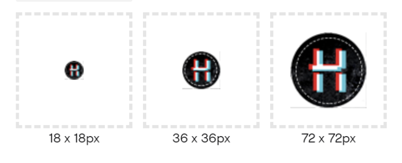 Below you can see examples of the elements you place on the icon and how much they will be visible depending on its size.