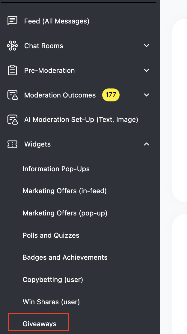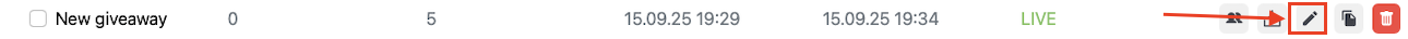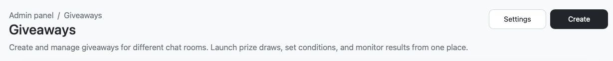 You can create and configure a giveaway either through the admin panel or directly from the chat interface.