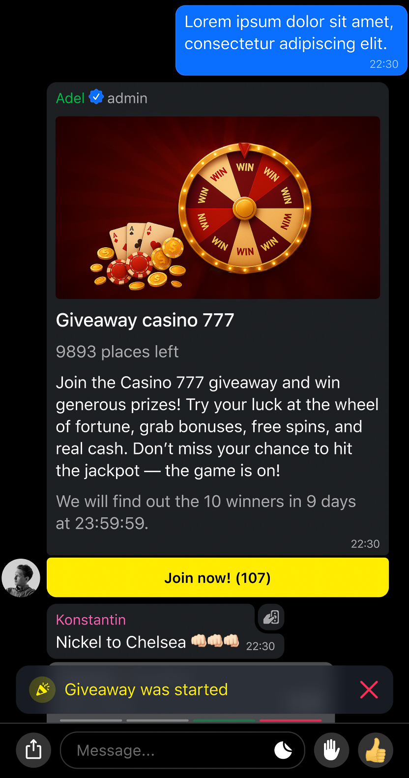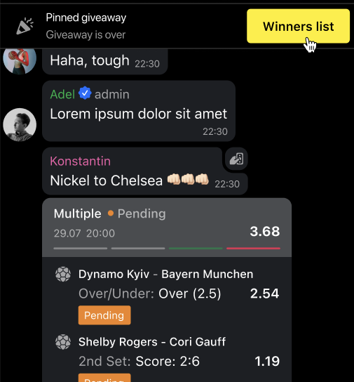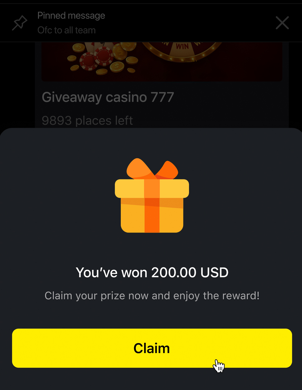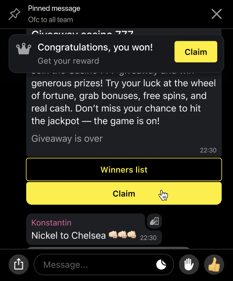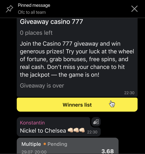 A chat administrator can pin the giveaway message so that all chat participants can easily and quickly join.