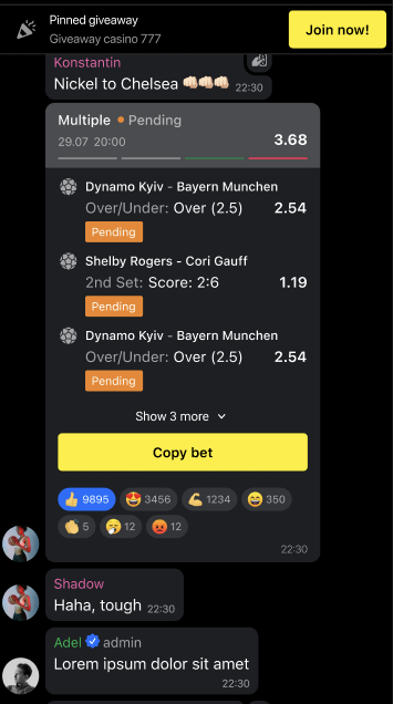 Once the giveaway is published in the chat room, all chat participants will receive a notification. After that, they can join by finding the giveaway in the feed and clicking the button in the giveaway widget.