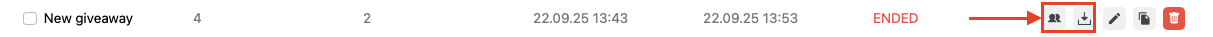 After the winners are determined, the admin panel provides the option to download the list of participants and winners. Based on this list, the administrator can confirm winners and assign prizes.